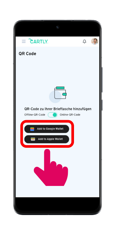 Bevor Sie auf Zu Google Wallet hinzufügen klicken, wählen Sie den gewünschten QR-Code-Typ aus: