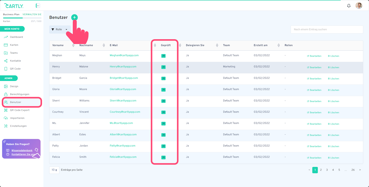 Um einen Admin-Benutzer in Ihrem Pro- oder Business-Konto zu erstellen, gehen Sie im Menü zum Abschnitt Admin und navigieren Sie zu Users.