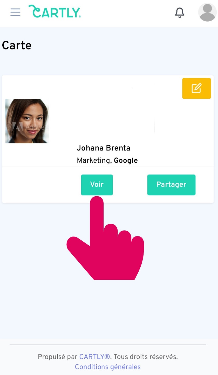 Klicken Sie auf das Symbol Siehe Karte, um den Link zu Ihrer digitale Visitenkarte zu öffnen.