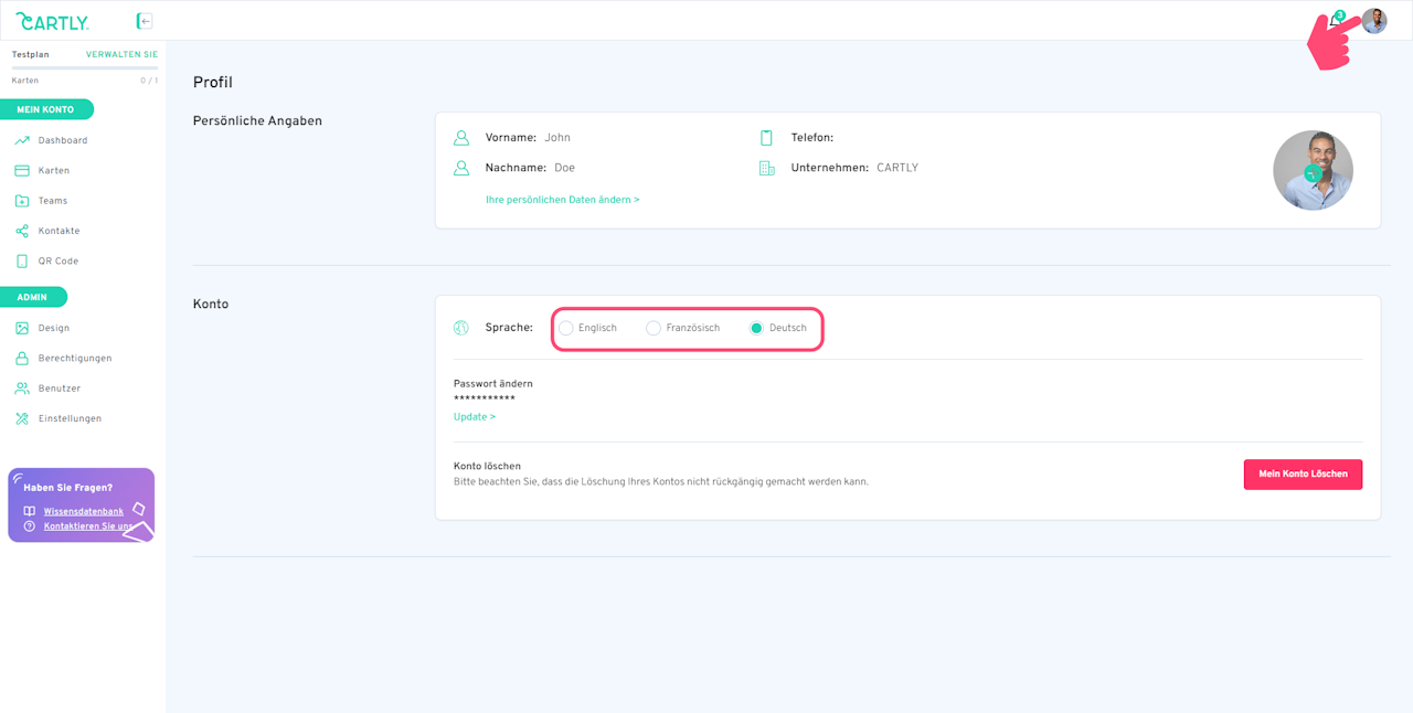 Die Sprache Ihres Kontos und Ihrer Karte ändern