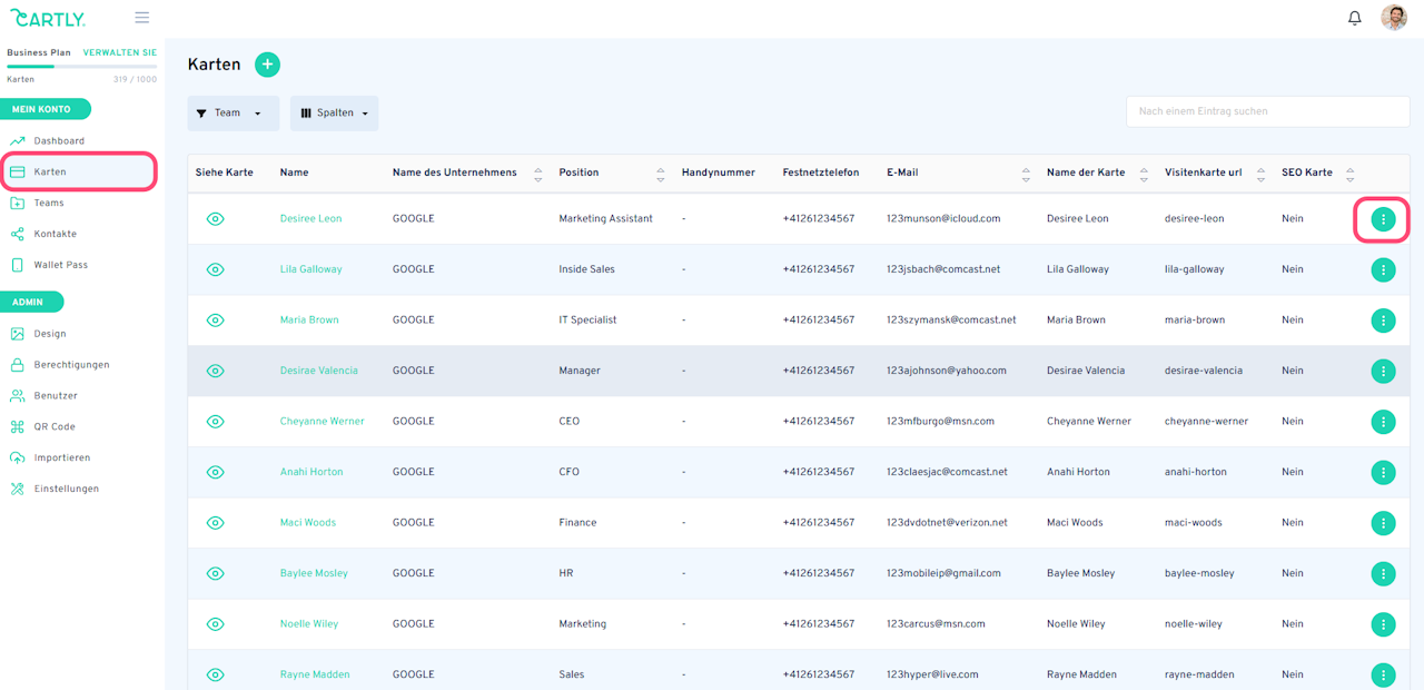 Gehen Sie dazu in den Kartenbereich und bearbeiten Sie die Karte, für die Sie die Standardsprache festlegen möchten.