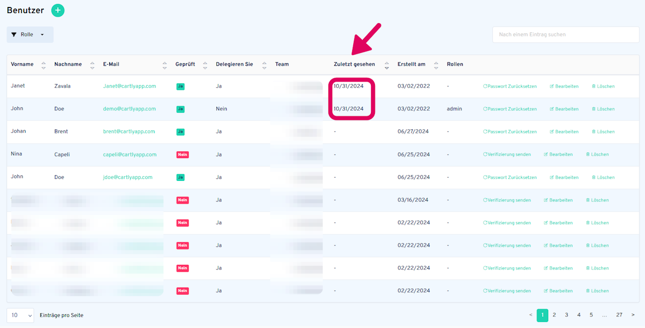 Die Spalte „Zuletzt angesehen“ in Ihrem Benutzer-Dashboard hilft Administratoren, die jüngsten Aktivitäten jedes einzelnen Benutzers zu verfolgen.