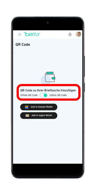 Im Abschnitt 'Wallet Pass' sehen Sie zwei Optionen: Online-QR-Code und Offline-QR-Code.