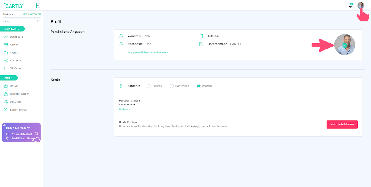 Wie lade ich ein Profilbild hoch?