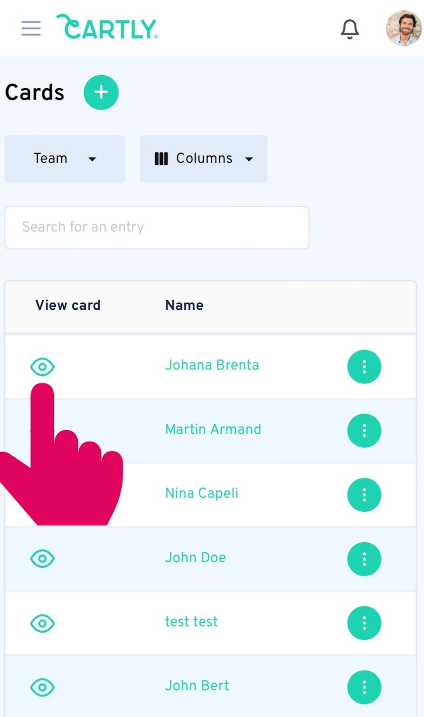 Click on the View card symbol, which will open your unique link to your virtual business card.