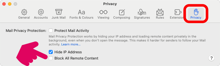 If your CARTLY signature images (photo, logo, QR code) are not displayed in Apple Mail, this is due to your privacy settings, which block external content.