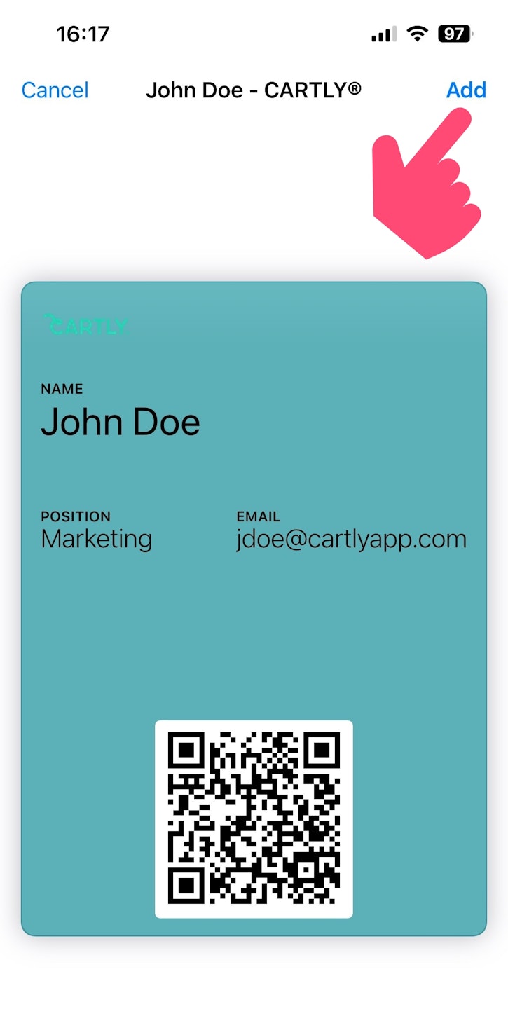 Once you have selected the type of QR code, click Add to Apple Wallet to finalize the addition.