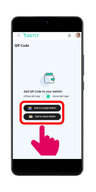 Online QR code: redirects to your CARTLY card and requires an internet connection.
