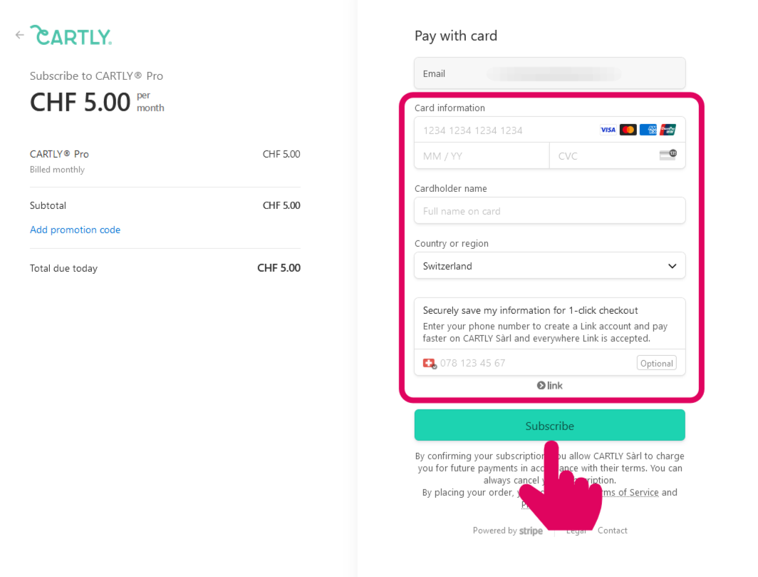 Click "Subscribe" to finalize your order. Invoices will be sent to your email.