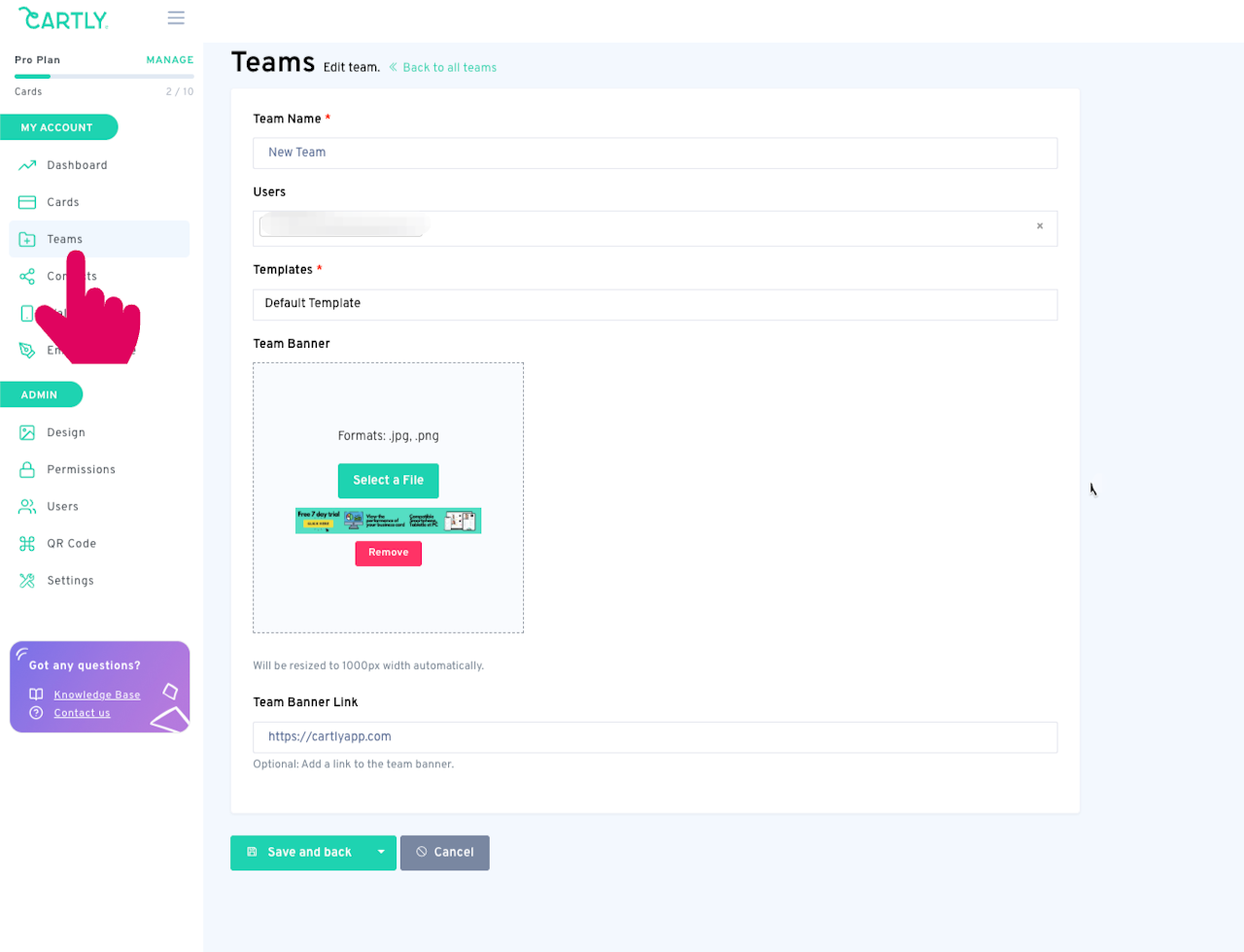 The Team Banner feature allows admin users to set a banner for their team. This banner is displayed: