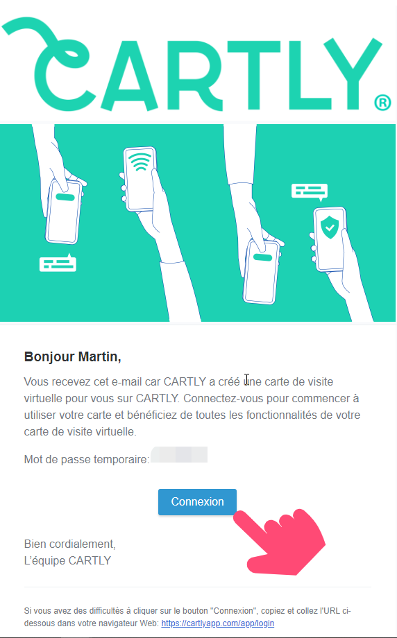 Si vous avez reçu une invitation par e-mail à activer votre compte CARTLY, cela signifie que votre employeur a créé une carte de visite virtuelle pour vous.