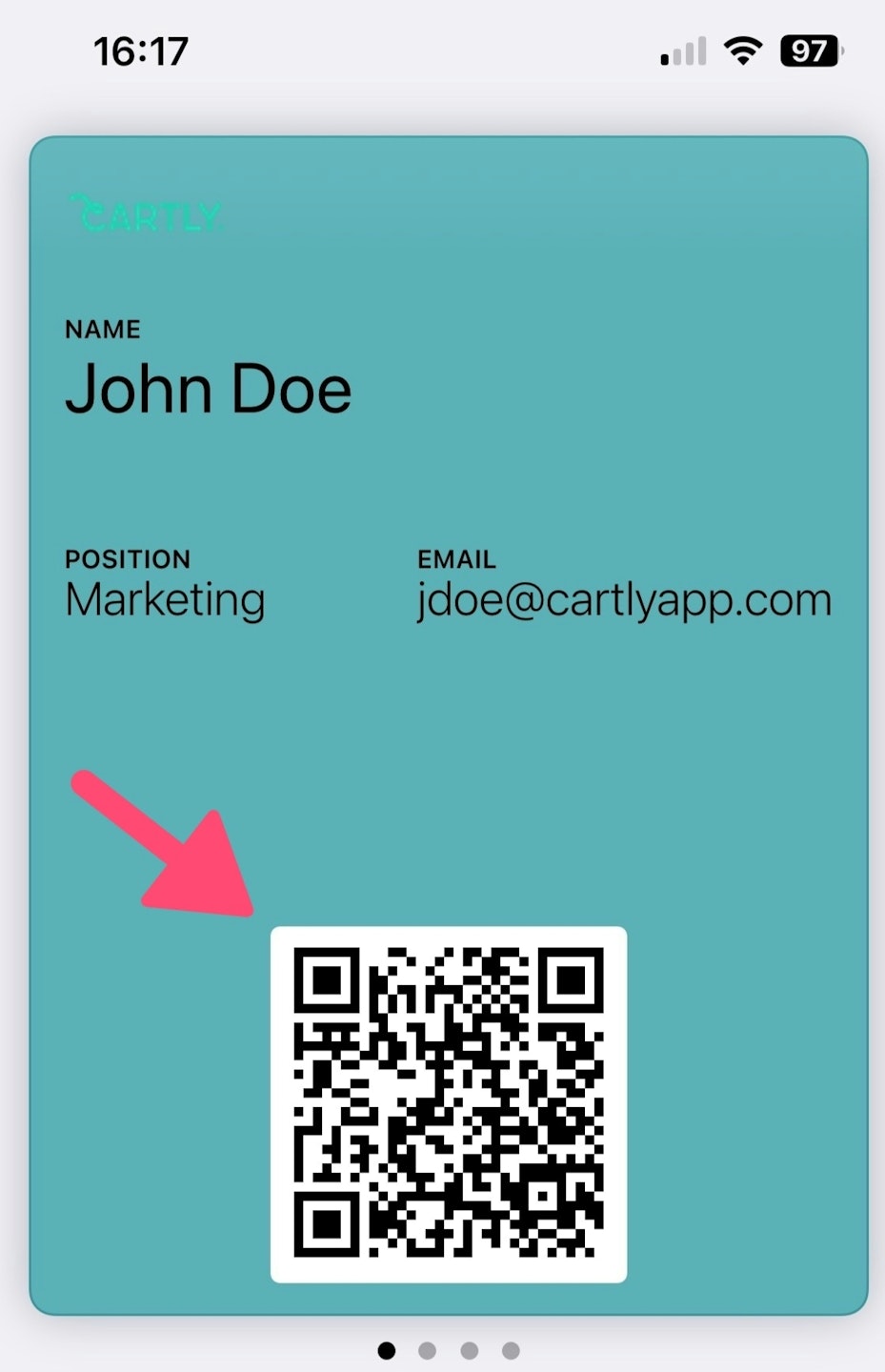 Les tierces personnes peuvent maintenant scanner votre QR Code et seront dirigées vers votre carte de visite virtuelle CARTLY.